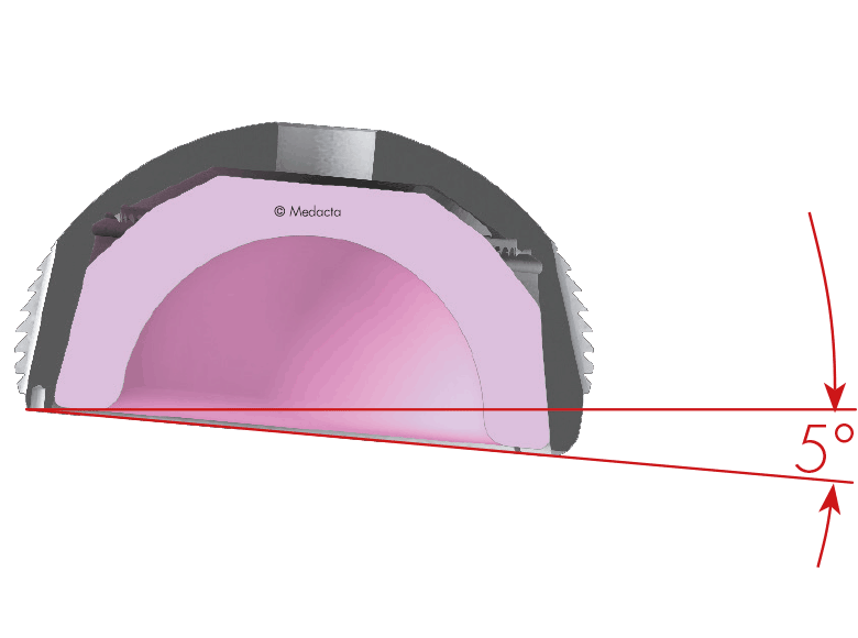 The acetabular component is the part of the implant that replaces the socket of your hip joint. It typically consists of a titanium shell that fits into the pelvis, and a smooth inner liner made of either ceramic or highly cross-linked polyethylene.